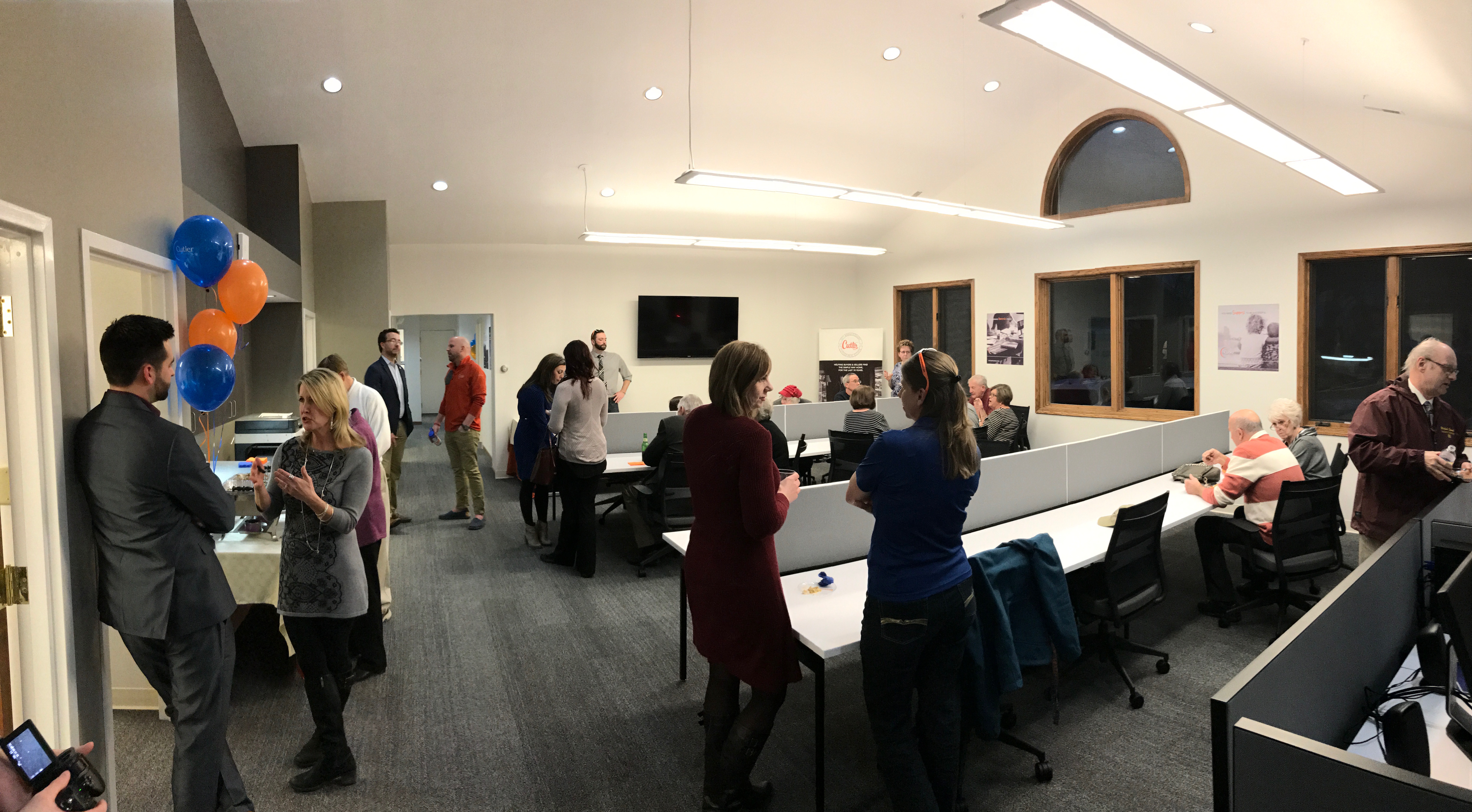 Ribbon Cutting at Stow "New Look" Celebration Following the trend of making 2017 the best year yet, Cutler set its sights on Stow as we continue the remodeling project of our offices in Northeast Ohio! Our Stow office celebrated earlier this month its "New Look"!  Realtors, Staff, Family, and Friends attended the celebration. Although the weather outside was cold and snowy, inside the office was filled with excitement, warm welcomes and hugs as guests were welcomed into a modern, open concept work space.   Realtor Work/Training Area!  Shirley Chimento, the Stow office manager, spent the evening in conversation with many visitors, excitedly talking about the much anticipated "new look" of the office. The renovation of this office started in Mid-December of 2016, since then a lot has changed. Most noticeably, there are no more cubicles to be found anywhere in this office. Now, Realtors are able to work together in an open, creative environment!  The Entrance of the Office The hors d'oeurves and desserts were provided by two local businesses in Stow Ohio. A delectable arrangement of stuffed mushrooms, grilled veggies and probably the best meatballs you'll ever eat were catered by family owned and operated, Kirbie's Meats and Catering. And please, do not even get us started on the desserts provided by Custom Cake Creations! Mini cupcakes, sugar cookies, lemon tarts, snickerdoodles satisfied even the sweetest of sweet tooth! We extend our gratitude to these wonderful local businesses! Our Stow office is located at 3653 Darrow Road Stow, Ohio 44224 and is open Monday through Friday from 8am to 5pm. To view more photos from the event, check out the Facebook Album Cheers to our New Stow office!