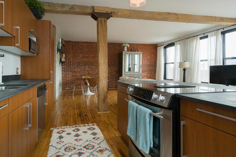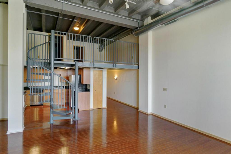 This loft space is perfect for those with a taste for a modern, industrial chic look. The unit includes exposed brick walls, reclaimed hickory floors, stainless steel appliances, cool black countertops and more — not to mention the abundant windows!  The unit is a one bedroom with more than 1,000 square feet to spread out, so you'll have plenty of space. Additionally, you'll be able to enjoy views of the surrounding cityscape, lots of natural light, out-of-unit storage space, elevator access, and an in-unit laundry.